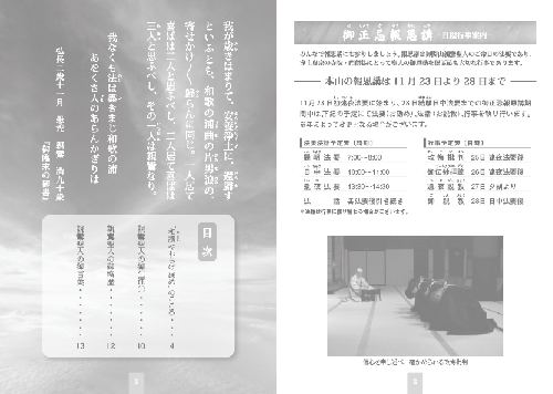 施本『報恩講』は毎年の御正忌とともに発刊され、増刷はございません。部数に限りがありますので、本堂内寺務所までお早めにお問い合わせください。